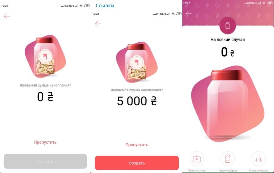 Итак, чтобы создать новую Банку, нажимаем на иконку внизу экрана. Приложение предложит ее создать и указать в названии цель накопления: «на отпуск», «на велосипед», «на новый iPhone». Если что, название поменять можно в любой момент. Мы назвали свою Банку «На всякий случай»: