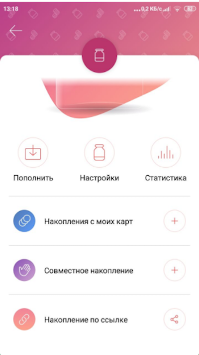 Кнопка «Пополнить» предлагает вручную пополнить Банку с одной из ваших карт: