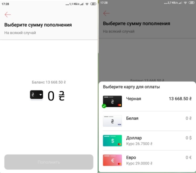 Как видно, сделать это можно с любой карты в любой валюте. Если пополняете долларовую Банку с гривневой карты, зачисление пройдет по курсу продажи доллара. Если наоборот – гривневую «Банку» валютной картой – по курсу покупки валюты.