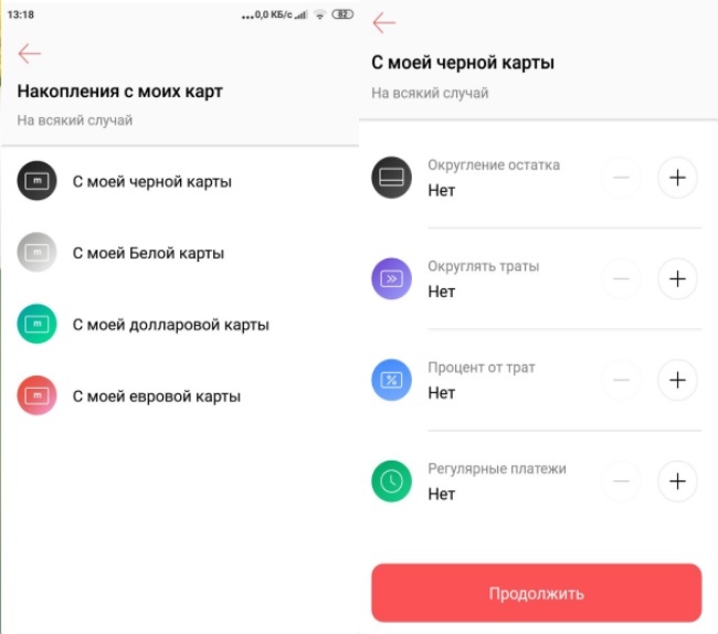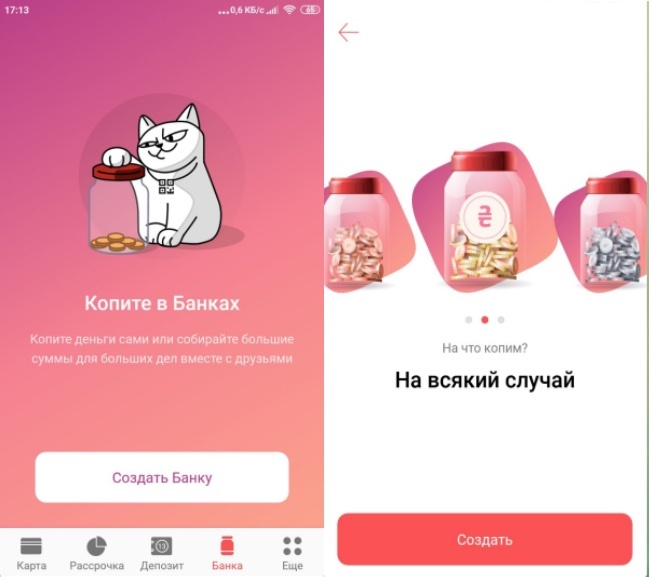 Процент от трат можно настроить от 1 до 10%. Если настроено условие 10%, то при трате каждой 1000 гривен 100 попадает в Банку.