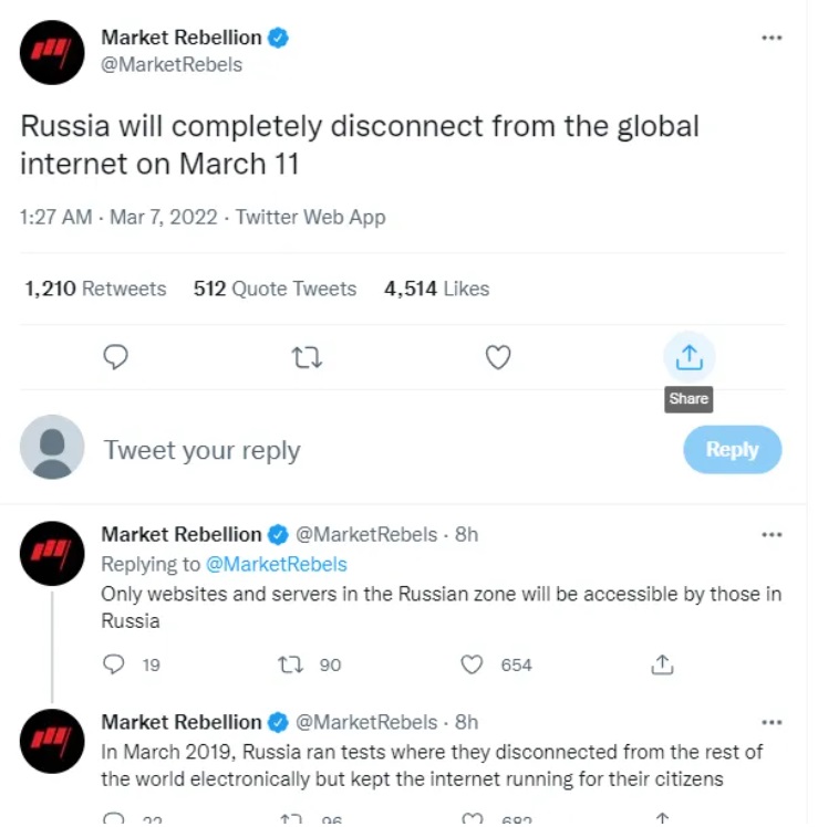 На днях россия полностью отключится от глобального интернета: Market Rebellion назвали дату